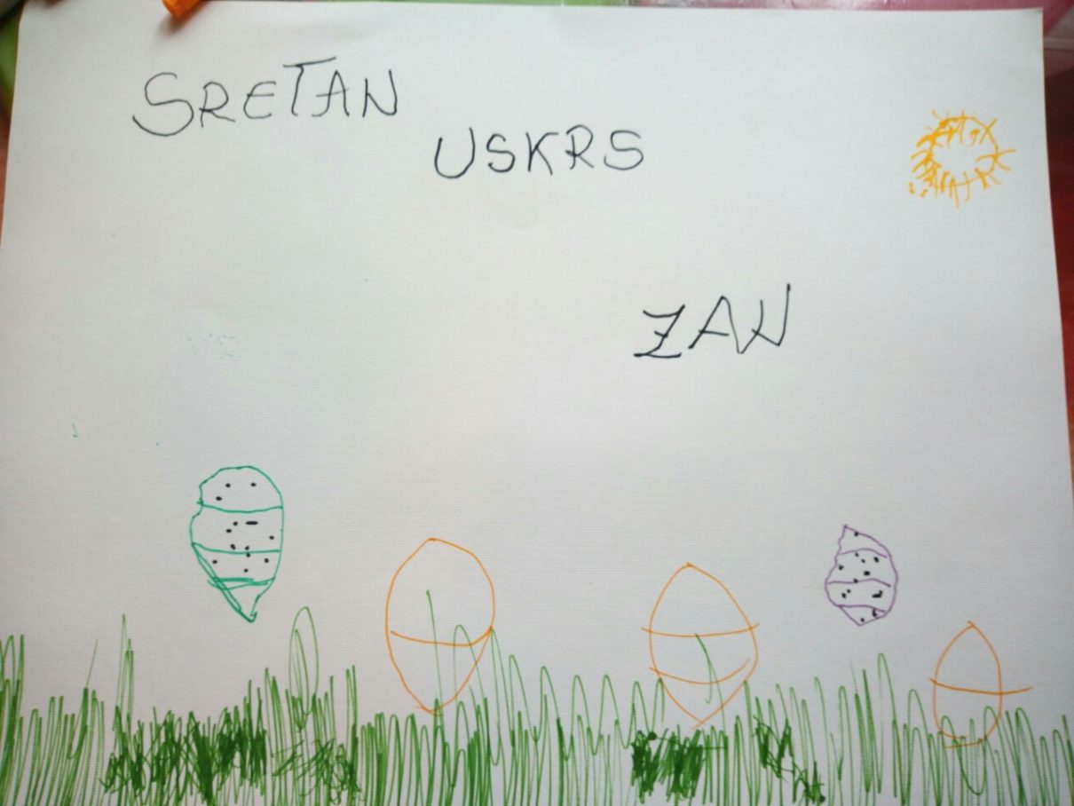 Dragi moji, u trenucima ove nevolje kad moramo biti svatko u svom domu i kad je naš Poludnevni boravak za djecu, mlade i odrasle prazan zahvaljujem svima koji su poslali svoje radove što nam dokazuje da možemo biti zajedno i kad smo razdvojeni. Ovim kolažom i pojedinačnim radovima u ime Udruge i osobno čestitam Uskrs