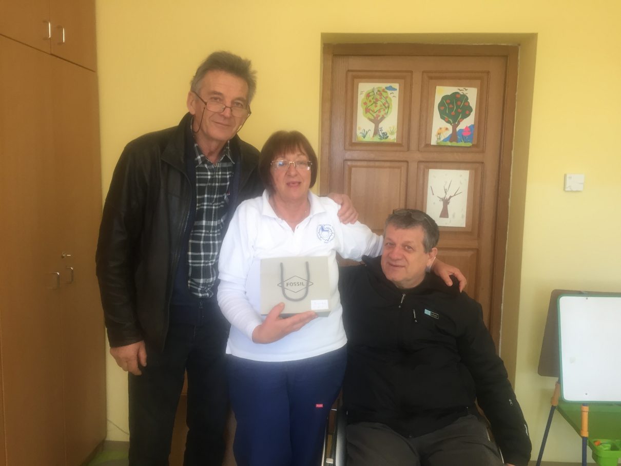 Dana 19. prosinca 2019. godine obilježili smo dvadesetu godišnjicu djelovanja udruge. Tom prigodom podijelili smo prigodne poklone zaslužnim djelatnicima za dugogodišnju odanost udruzi. Jedna od zaslužnih djelatnica je naša Jovanka Trišić koja zbog privatnih obaveza nije mogla biti s nama pa su joj jučer predsjednik udruge Josip Blažević i direktor Vlado Arežina uručili prigodni poklon.