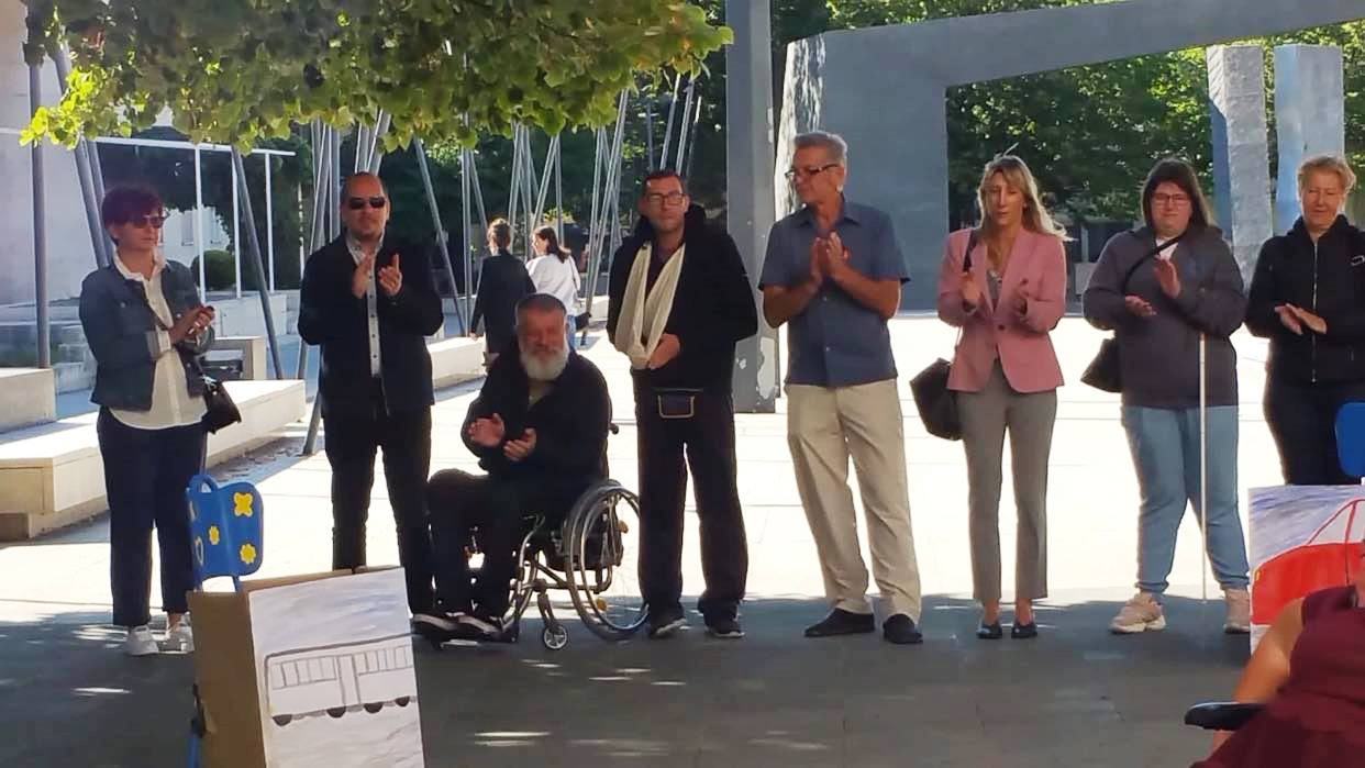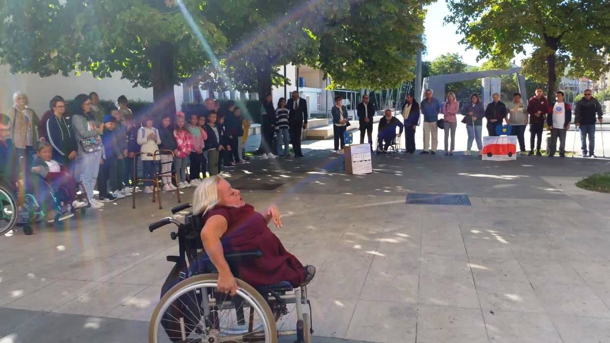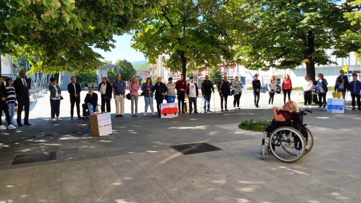 Snježana Jolić je ispred Udruge u svom kratkom govoru nakon flash moba istakla koliko je važno za život svakog čovjeka putovati i kretati se, a da su osobe s invaliditetom, iako imaju ista prava, zbog nedostupnosti i barijera u tome često onemogućene.